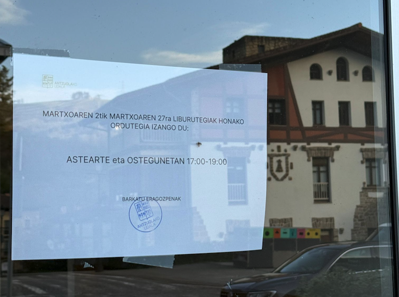 Antzuolako Udalak jakinarazi du liburutegiko eta udal komunikazioko ardura duen pertsona ez dela egongo martxoa bukatu arte: "Hori dela eta, komunikazioan akats batzuk izan daitezke, eta liburutegia astearte eta ostegunetan soilik egongo da irekita, 17:00etatik 19:00etara. Barkatu eragozpenak".