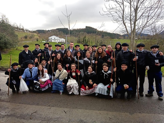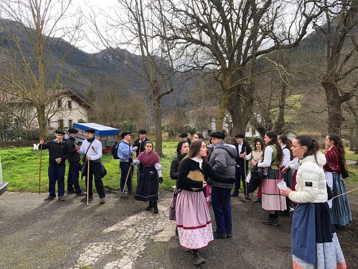 Santa Agedaren omenezko koplak entzun dira Aretxabaletako auzoetan gaur. 2007an jaiotako kintoek, 90etik gora, umore ona eta jai-giroa eroan dituzte baserrietara eta harrera ezin beroagoa egin diete horietan.