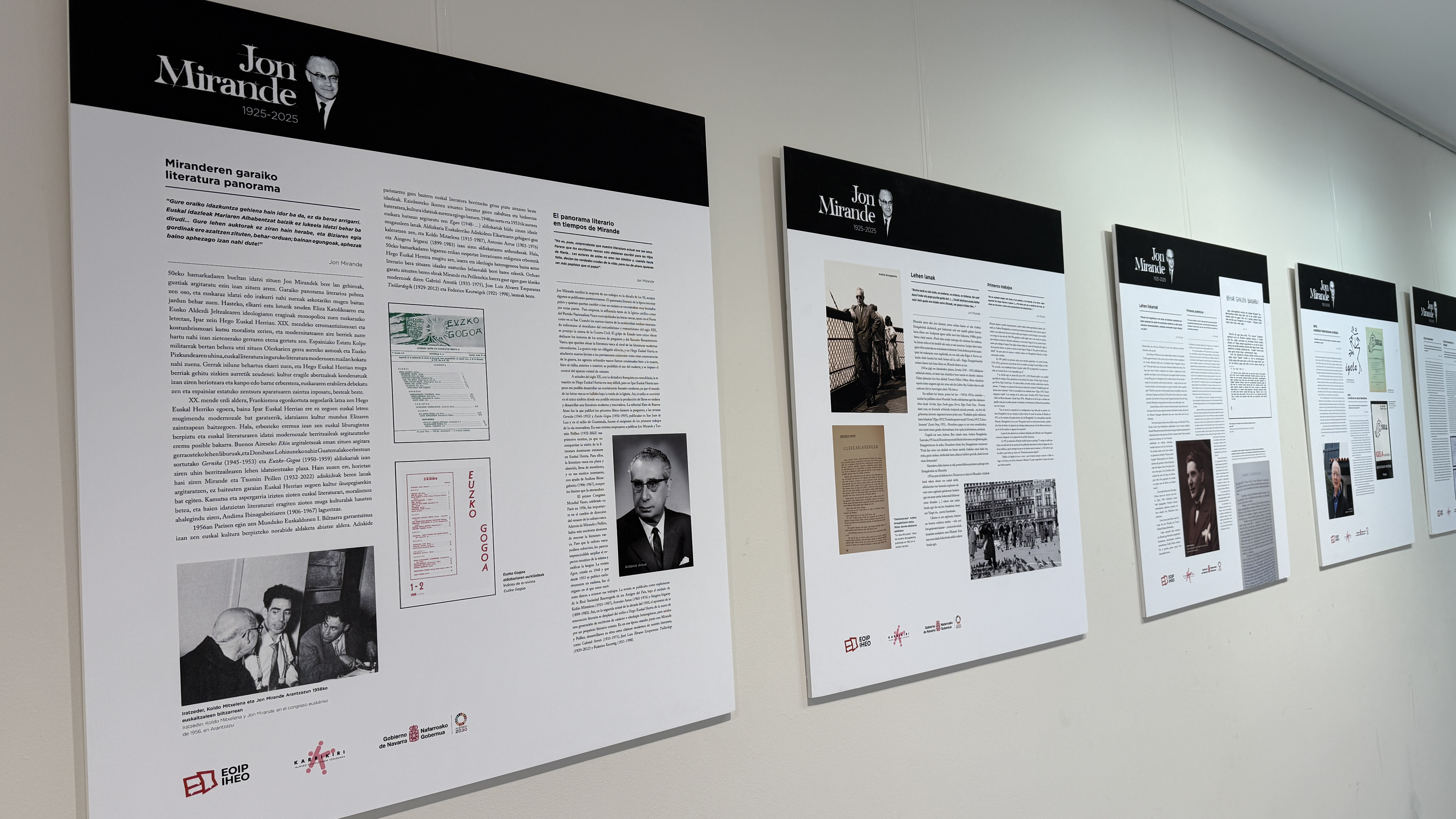 Iaz, 100 urte bete ziren Jon Mirande idazlea hil zela, eta, egun hori aintzat hartuta, haren bizitza eta obra nagusiak aztertzen dituen erakusketa bat egongo da ikusgai, hilabetean zehar, Arkupeko erakusketa aretoan. Iruñeko Hizkuntza Eskola Ofizialak sortutako erakusketa da eta euskarazko zein gaztelaniazko hamabi panelez osatuta dago.