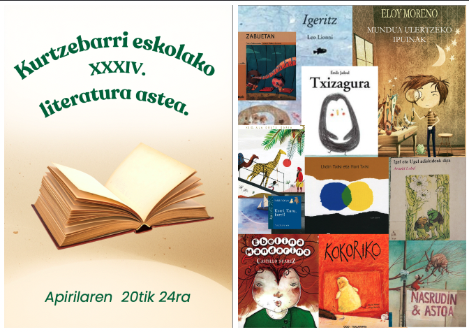 Liburuaren Nazioarteko Egunaren bueltan Literatur Astea egingo dute Kurtzebarri eskolan, ohi legez. 34.ez izango da eta nabarmentzekoen artean honako ekitaldi hauek iragarri dituzte: