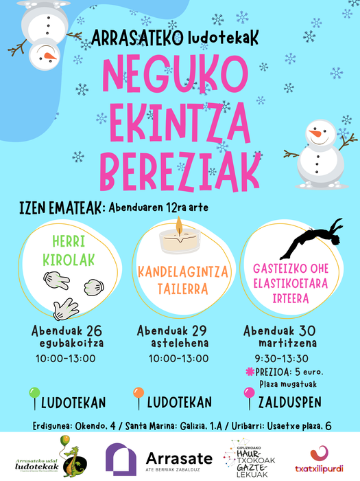 Ekintzetan parte hartzeko izena eman behar da, abenduaren 12a baino lehen, ludoteketan.