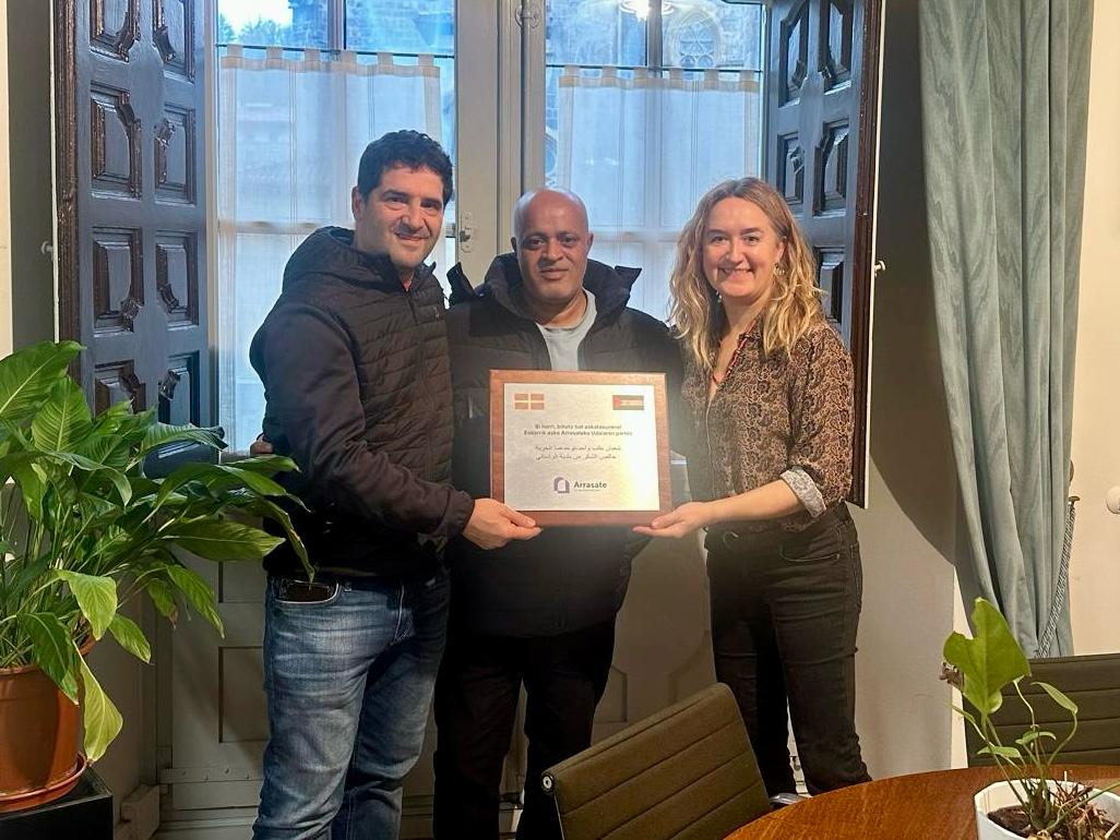 Udalak eskerrak eman die proiektua garatzen ari diren pertsona eta erakundeei, bereziki Birziklanet proiektuari, Arizmendi Ikastolari eta Arrasaten errotuta dagoen Saharaldeba taldeari. Halaber, saharar kanpamenduetako hezkuntza arduradunei oroigarri bat bidaliko die. Oroigarri hori jaso dute, Maider Morras alkatearen eskutik, Saleh Salekek, Saharaldeba elkarteko arduradunak, eta Gaizka Erañak, Birziklanet proiektuko arduradunak. Zer dio plakak: Bi herri, bihotz bat askatasunera! Eskerrik asko Arrasateko Udalaren partez.