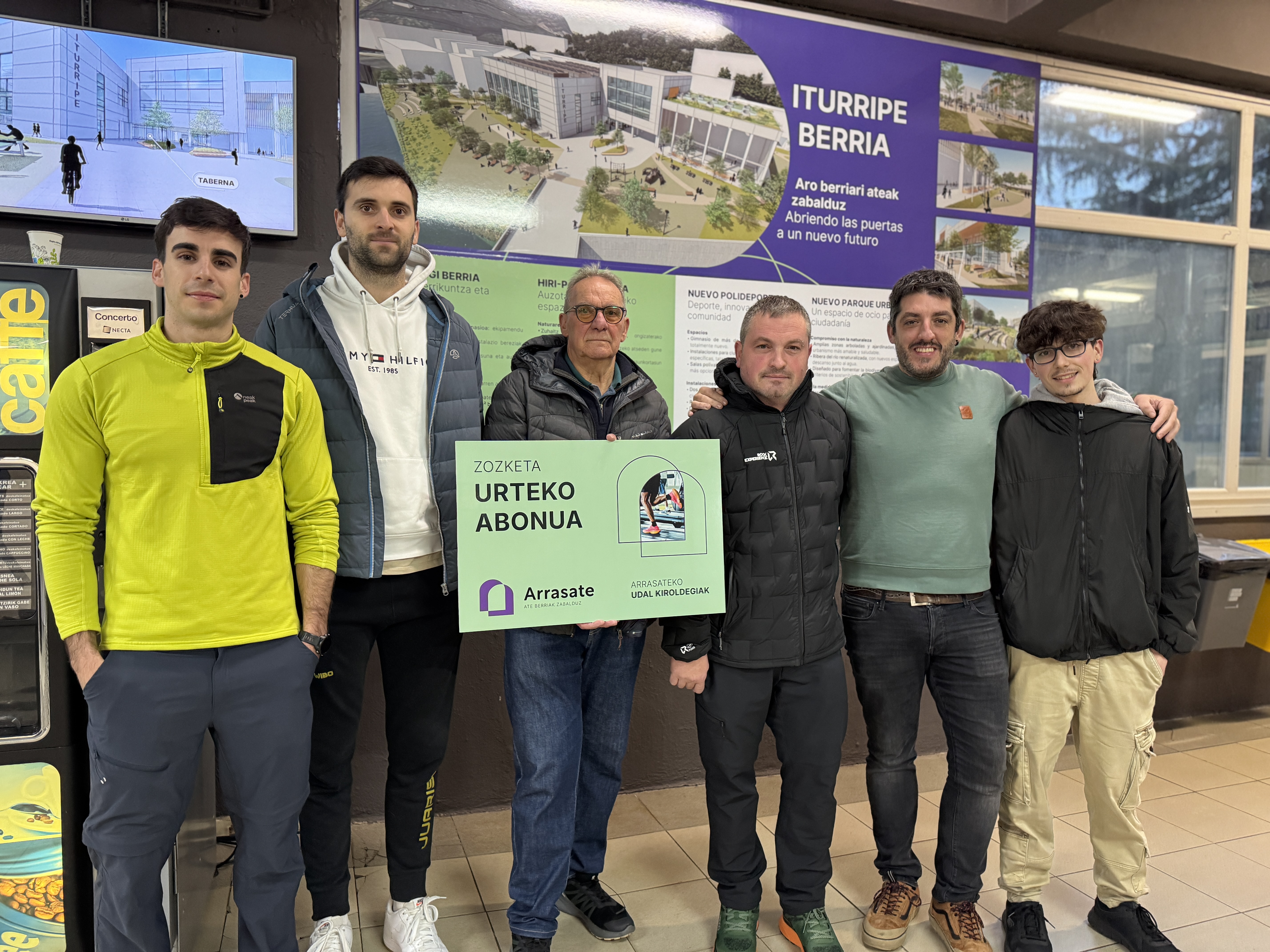 Kirol abonua berritu duten pertsonen artean hamar abonu zozketatu ditu Arrasateko Udalak. Gaur, irabazle suertatu direnetako batzuek, Musakolako Kiroldegian jaso dute saria kirol zinegotzi den Mikel San Miguelen eskutik.