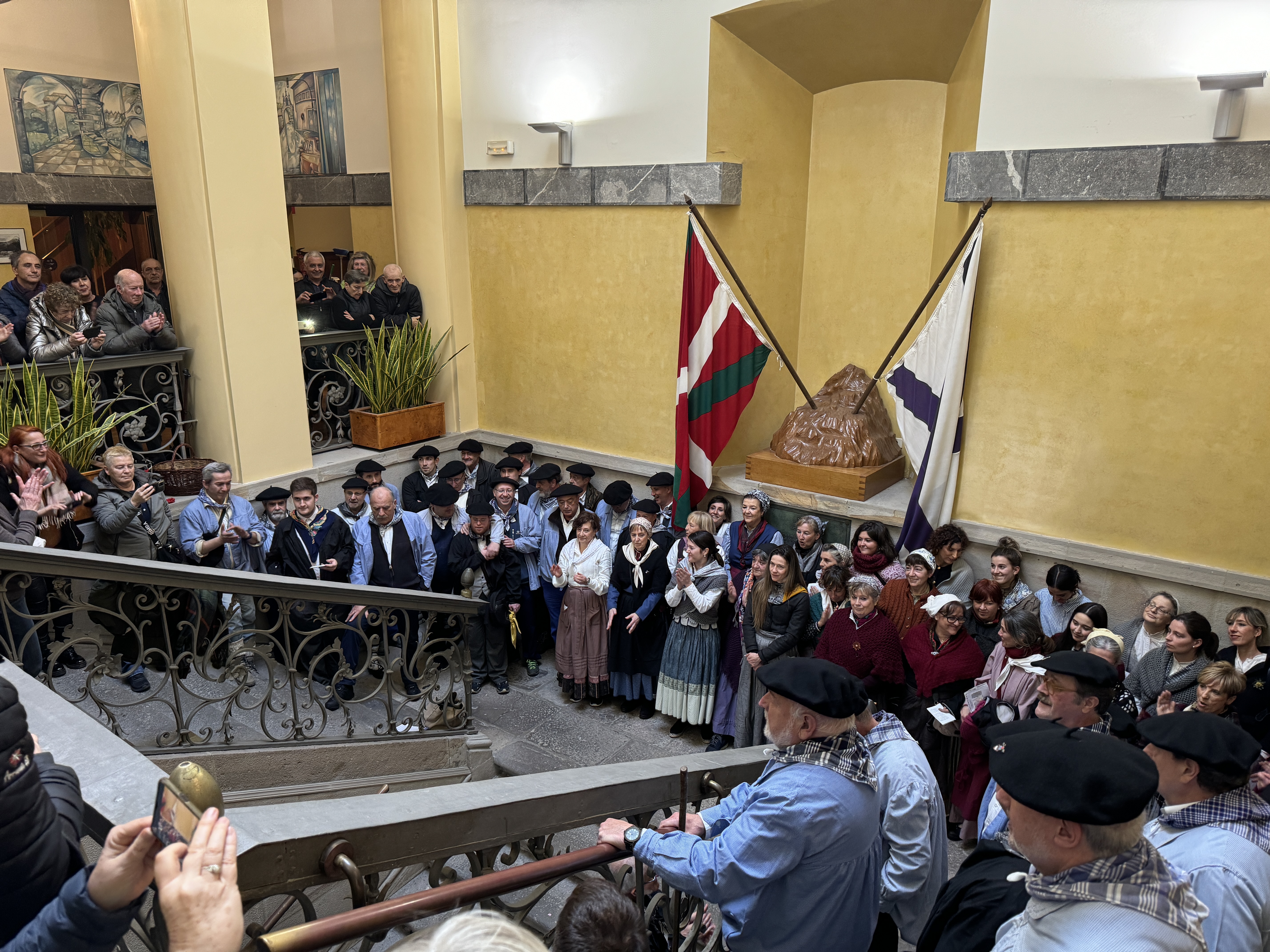14:00etan, guztiek elkarrekin, udaletxean abestuko dute. Hori baliatuta, Udalak babesa adierazi dio abesbatzari. "Lan itzela egiten ari dira transmisio kulturala bermatzeko; gure eskerrik beroenak haientzat. Herritarrak udaletxera etor daitezela!". Ilunkeran, plazan abestuko dute.