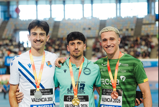 Eneko Carrascal atleta arrasatearrak urrezko domina jantzi zuen atzo Valentzian jokatzen ari den Espainiako pista estaliko txapelketan. Carrascal hirugarren markarik onenarekin heldu zen txapelketara, baina finaleko bosgarren jauzian, sekulako marka lortu zuen, 16,20 metrokoa –bere markarik onena berdinduta–. Bigarren sailkatua eta zilarrezko domina Ramon Adalia kataluniarra izan zen, eta hirugarrena Jesus Lopez andaluziarra.
