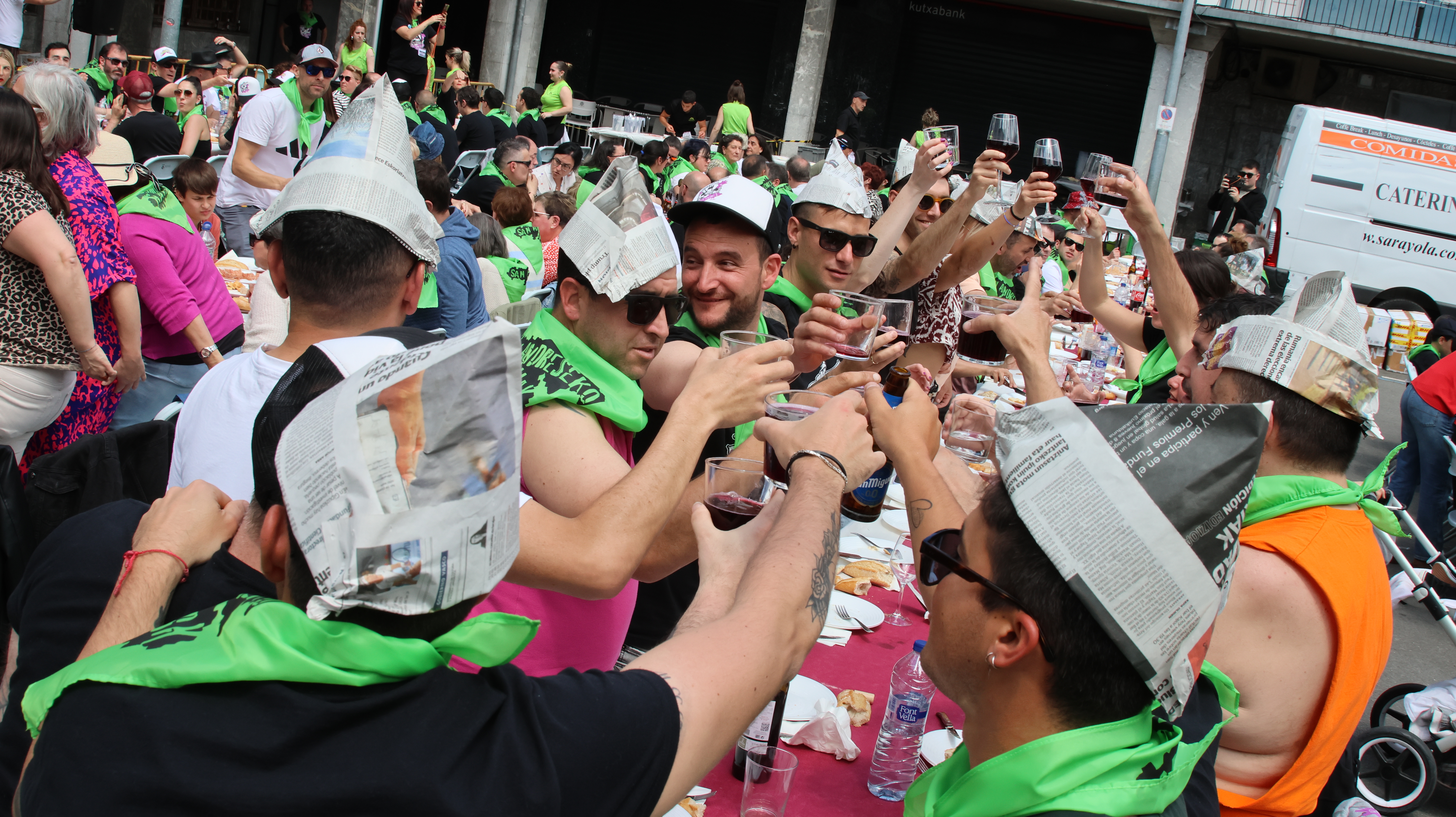 Aurtengo bazkari herrikoia maiatzaren 2an egingo dute, 14:30ean, Gudarien plazan bertan. Bi menu egongo dira aukeran: helduentzakoa eta haurrentzakoa. Helduen menuak 28 euroko prezioa izango du, eta, besteak beste, patea, urdaiazpikoa, frijituak, penka beteak hondo saltsan eta oilasko izterrak saltsan izango ditu; amaitzeko, goxua edo sorbetea eskainiko dute, eta edaria, kafea eta kopa barne egongo dira. Haurrentzako menuak, berriz, 14 euro balioko du (12 urtera artekoentzat), eta makarroiak, hanburgesa patatekin, postrea eta edaria izango ditu.