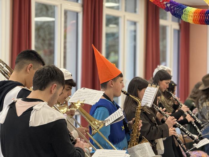 Musika eskolatik abiatuta, Mizpirualde egoitza izan zen gazteen bandaren lehen geldiunea. Bertan, egoiliarrak, mozorrotuta, pozaren pozez egon ziren gazteen bandaren kantuak entzuten.