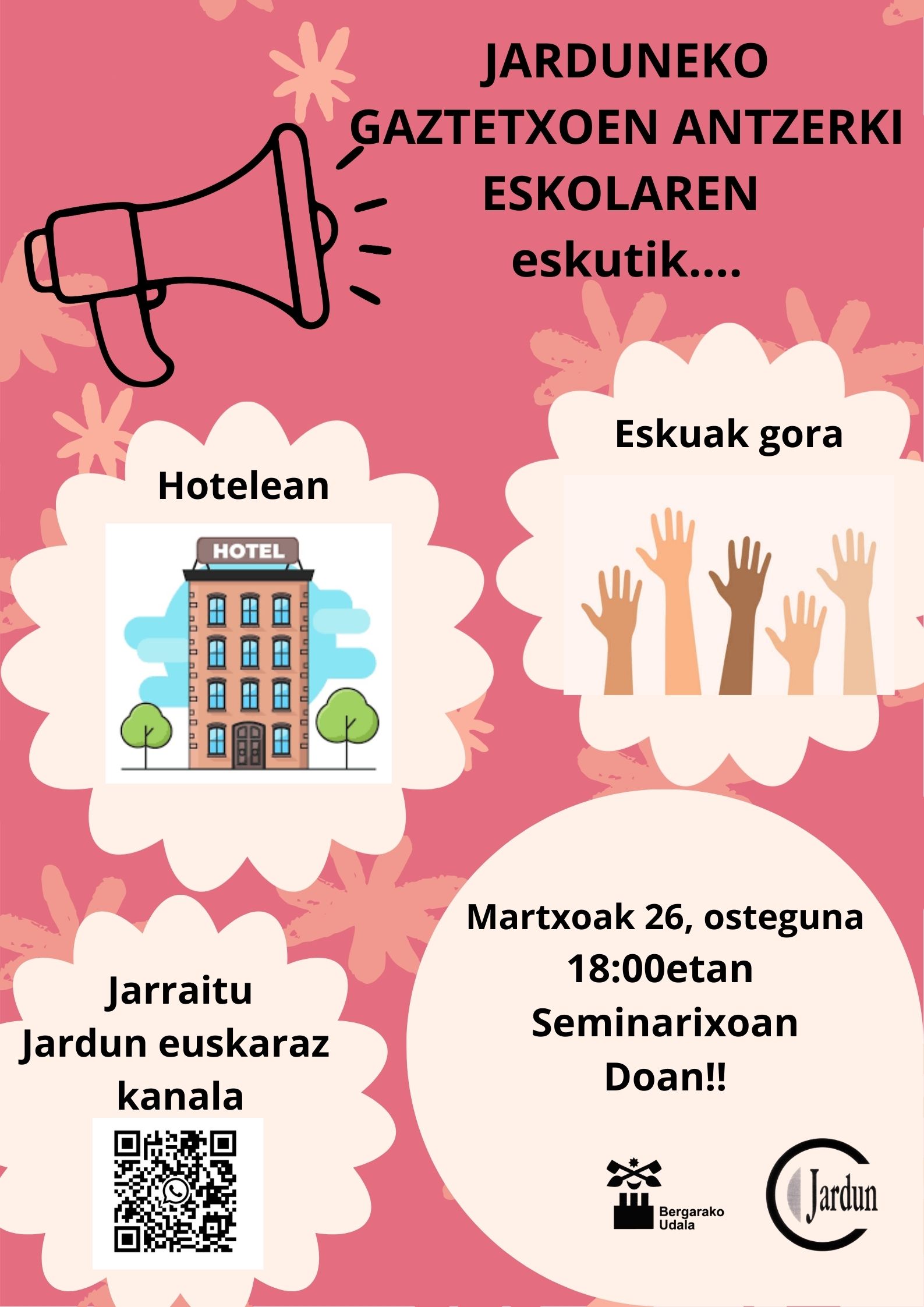 Jarduneko Antzerki ekolako gazteek emanaldia eskainiko dugu martxoaren 26an, arratsaldeko 18:00etan Bergarako Seminarixoan.