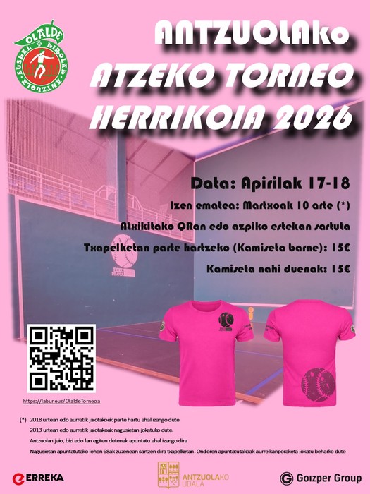 Herritarren artean babes zabala duen ekitaldia da Atzeko txapelketa. Iaz, esaterako, 80 lagunek hartu zuten parte. Olalde pilota elkartetik aurreratu dute nagusietan apuntatzen diren lehen 68ak zuzenean sartuko direla txapelketara, eta ondorengoek aurre-kanporaketa jokatuko dutela. Pilotarien artean hiruko taldeak egitea da asmoa, eta irabazleak kanporaketetara sailkatuko dira. Neurketak 10 tantora jokatuko dira; finalerdiak eta finala, berriz, 8 tantoko bi jokotara –berdinketarekin, 4 tantoko beste joko bat–. Partaideek epaile lanak ere egin beharko dituzte.
