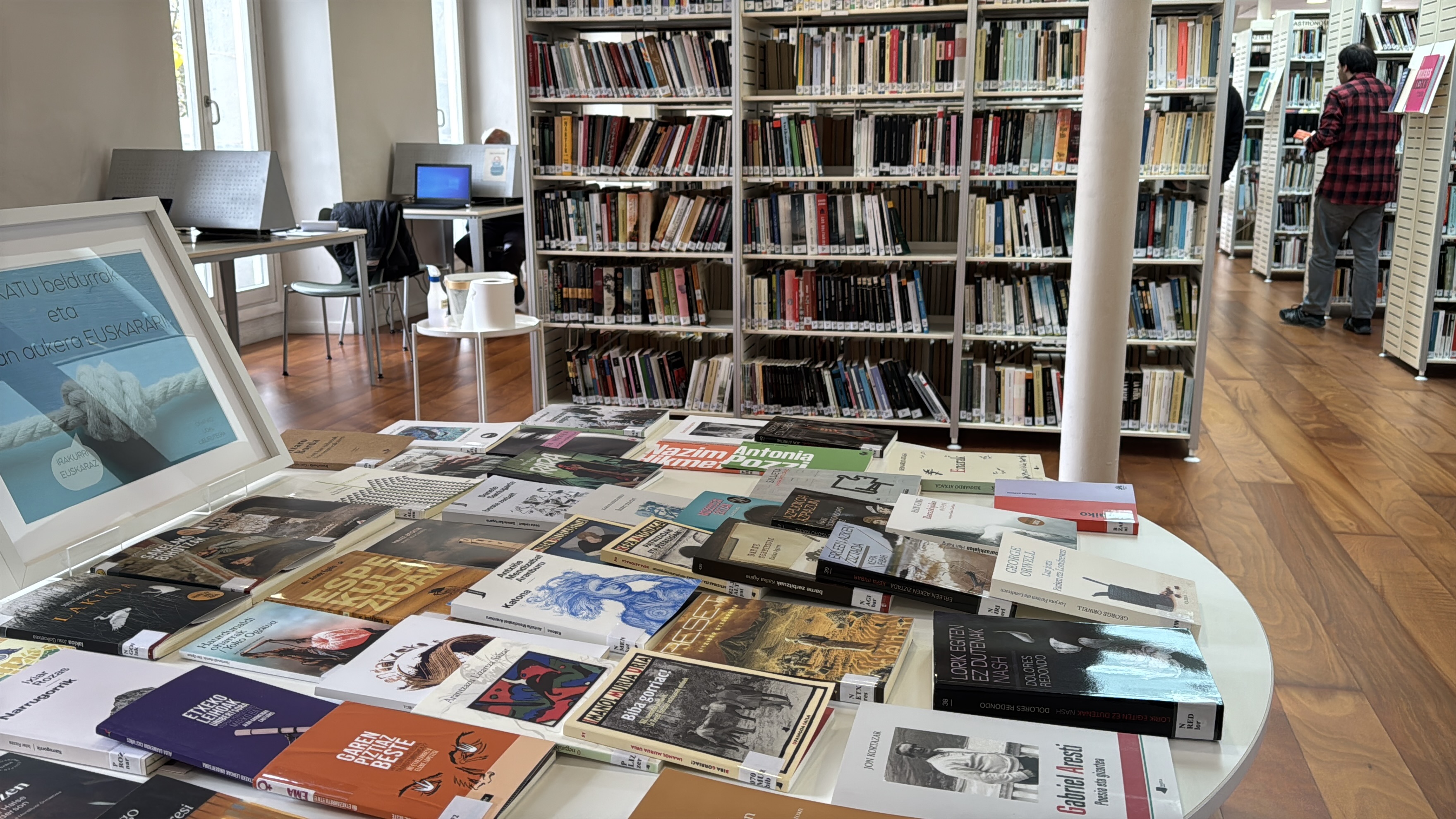 Euskaraz irakurtzeko gonbidapena eginez, aurten, 2025ean, euskaraz idatzi eta argitaratu diren liburuak pilatu eta ikusgai jarri dituzte udal liburutegiko erakusmahaian. Euskararen Nazioarteko Egunarekin batera prestatu zuten mahaia, eta ikusgai jarraitzen dute. Baten bat falta izanez gero, liburutegiko langileei galdetuta eskura daiteke.