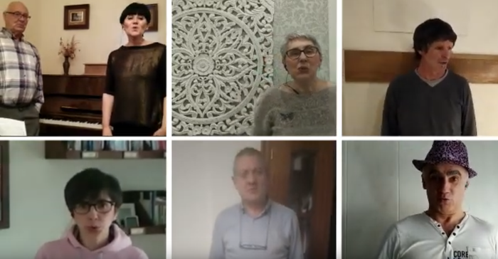 Aretxabaletako abesbatza osatzen dutenek Zorionak zuri abestia abestu dute eta etxean sartuta daudenei edota ospitalean dauden horiei eskaini nahi izan diete, animoak emanez.