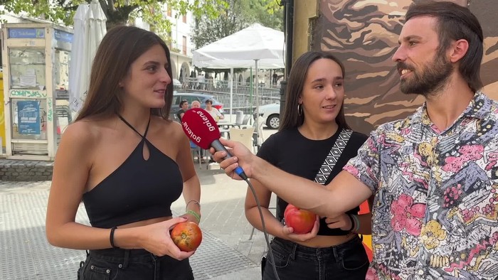 Tomatearen Astea dela-eta, Aitor Agiriano aretxabaletarrak zirikatzera hurbildu da. Ortuko bi tomate hartu eta kalera irten da Aretxabaletako barietatea ezagutzen ote duten ikusteko.