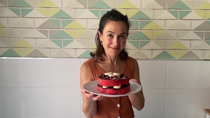 Tarta azkar bat prestatzeko errezeta egiten ikasiko dugu oraingo honetan. Horretarako, sandia, txokolatea eta platanoa behar dira; fruta jateko beste modu bat.